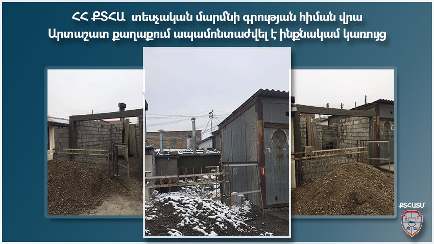 ՀՀ քաղաքաշինության, տեխնիկական և հրդեհային անվտանգության տեսչական մարմնի Արարատի տարածքային բաժնի կողմից կատարված ուսումնասիրությամբ պարզվել է, որ ՀՀ Արարատի մարզի Արտաշատ խոշորացված համայնքի Արտաշատ քաղաքի շուկայի հարակից տարածքում՝ երթակարգավարական կետին կի