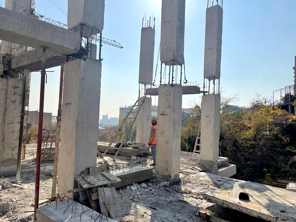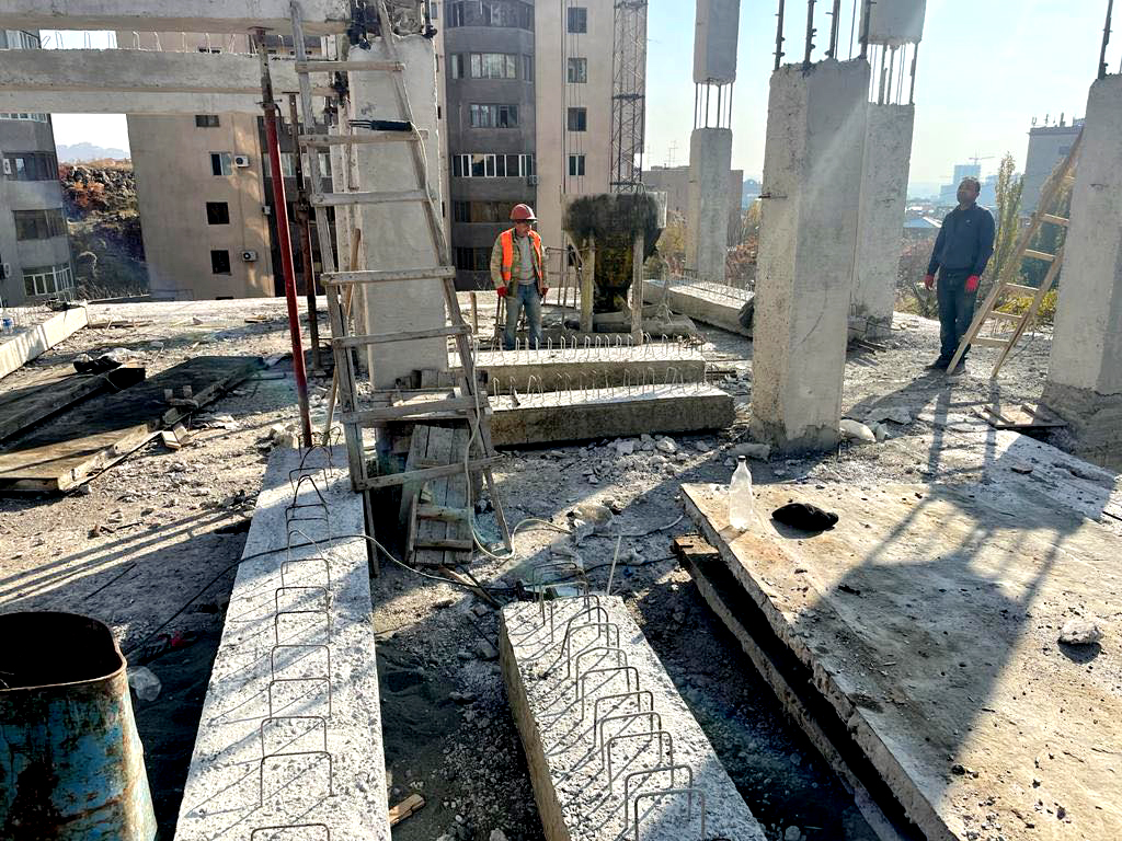 Մասնավորապես՝ կառույցի կոշտության դիաֆրագմաներում և երկաթբետոնե պատերում տեղադրված են նախկինում օգտագործված պողպատյա ամրաններ, երկաթբետոնե տարրերի ելուստների քայլը չի համապատասխանում նախագծին, բետոնի տոփանումն (հարթեցում) իրականացվել է թերի, բետոնի պաշտպանիչ շերտը տեղ-տեղ բացակայել է, կրող տարրերի զուգավորման հանգույցներում անուրները (хамут) չեն համապատասխանել գործող նորմերին և նախագծին։ Արդյունքում' նշված խախտումները կարող են ազդել շենքի ամրության, կայունության վրա, ինչպես նաև վտանգավոր են մարդկանց համար և չեն կարող վերացվել' առանց դադարեցնելու տվյալ տեղամասում շինարարական աշխատանքները։
