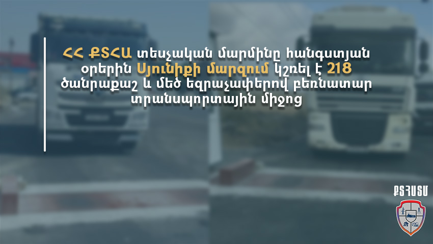 Ուստի ՏՄ-ն ՀՀ տարածքում ծանրաքաշ և (կամ) մեծ եզրաչափերով տրանսպորտային միջոցներով փոխադրումներ իրականացնող կազմակերպություններին ու անհատ վարորդներին ևս մեկ անգամ հորդորում է փոխադրումների գործընթացն իրականացնել բացառապես ՀՀ գործող օրենսդրության պահանջներին համապատասխան։