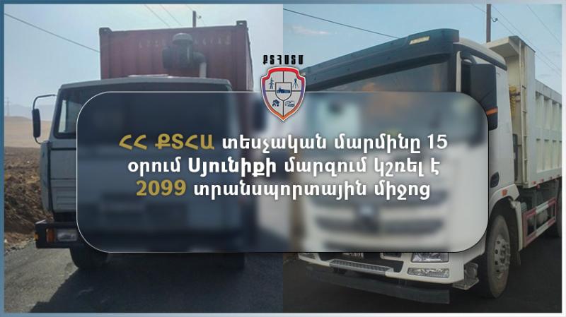 Նշենք, որ բեռնափոխադրող տրանսպորտային միջոցների նկատմամբ տեսչական վերահսկողությունն արվում է 24 ժամյա ռեժիմով։