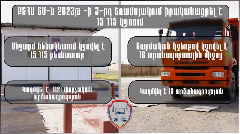 2023թ-ի հուլիս-սեպտեմբեր ամիսներին ՏՄ տրանսպորտային անվտանգության մասնագետները կշռման երկու անշարժ հենակետերում՝ շարժական և անշարժ կշեռքների միջոցով իրականացրել են ընդհանուր առմամբ 15 115 կշռում։