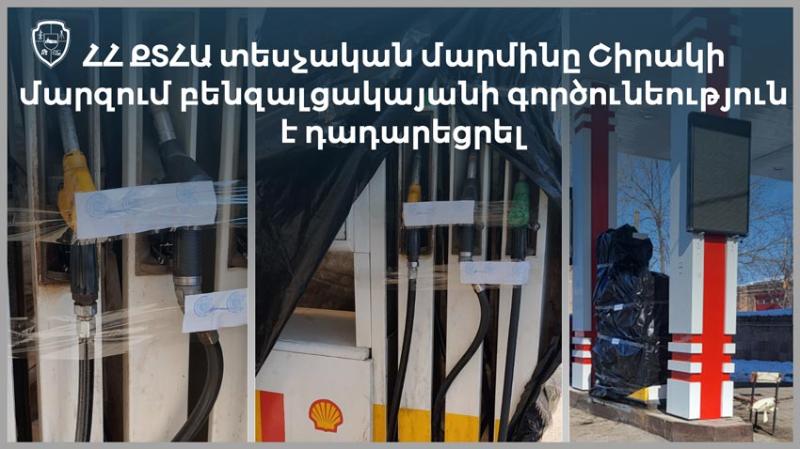 Ուստի՝ հաշվի առնելով հրդեհային և տեխնիկական անվտանգության պահանջների խախտումների ռիսկայնությունն ու վտանգավորության աստիճանը՝ ՀՀ ՔՏՀԱ տեսչական մարմնի ղեկավարը Շիրակի մարզի Մարալիկ քաղաքի Հ.Շահինյան փողոցում շահագործվող բենզալցակայանի գործունեության դադարեցման վերաբերյալ որոշում է կայացրել, և ՀՀ հարկադիր կատարումն ապահովող ծառայության հետ համագործակցության արդյունքում բենզալցակայանը կապարակնքվել է։