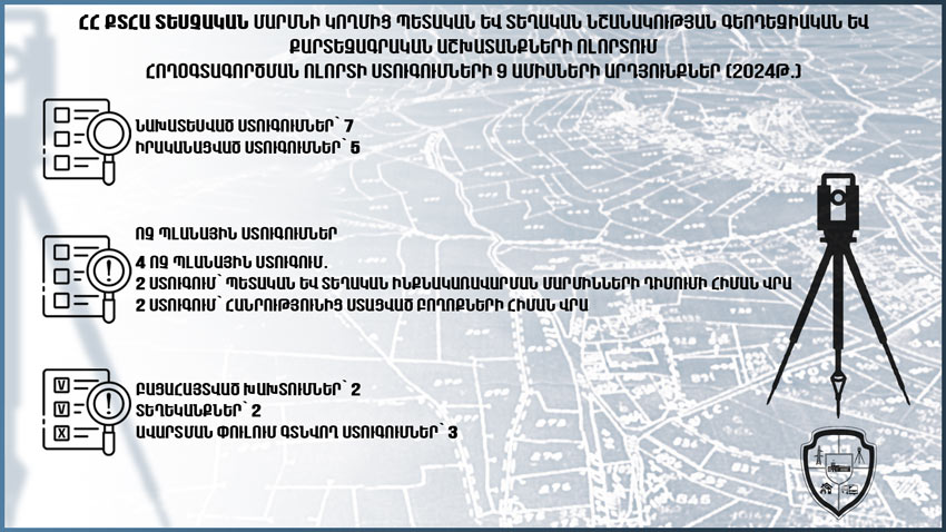 2024 թվականի 9 ամիսների ընթացքում ստուգումների տարեկան ծրագրով իրականացվել է․