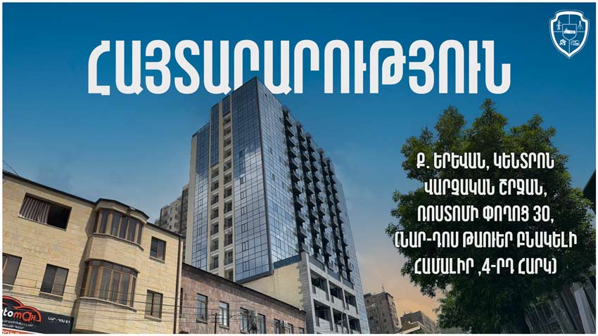 ք. Երևան, Կենտրոն վարչական շրջան, Ռոստոմի փողոց 30, (Նար-Դոս Թաուեր , 4-րդ հարկ)