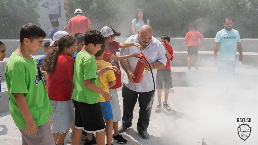 Տեսչական մարմնի մասնագետների օգնությամբ ճամբարական երեխաները սովորեցին կրակմարիչի օգտագորման ձևերը և տեղում՝ հենց երեխաների մասնակցությամբ, հրդեհ մեկուսացնելու գործնական միջոցառում իրականացվեց ։