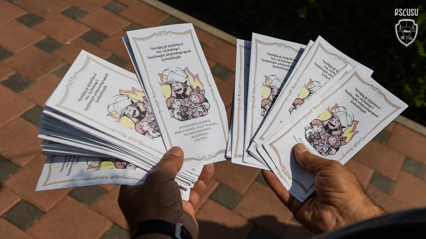Տեսչական մարմնի հրդեհային անվտանգության մասնագետները ճամբարներում հանգստացող 7-16 տարեկան երեխաներին առարկայական օրինակներով իրազեկեցին անտառային և խոտածածկ տարածքներում հրդեհների առաջացման աղբյուրների, հրդեհները կանխարգելելու, հրդեհային անվտանգության կանոնները պահպանելու, հրդեհի դեպքում կատարվելիք անհրաժեշտ գործողությունների, տարհանման ձևերի ու միջոցների, հրդեհաշիջման սկզբնական միջոցների օգտագործման եղանակների վերաբերյալ։