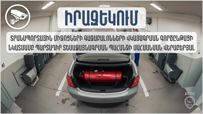 Հիշեցնենք, որ ՀՀ կառավարության 2021 թվականի դեկտեմբերի 9-ի N 2011-Ն որոշմամբ սահմանվում է սեղմված բնական կամ հեղուկացված նավթային գազով աշխատելու համար ավտոտրանսպորտային միջոցների վրա գազաբալոնային սարքավորումների տեղադրման և գազաբալոնների պարբերական վկայագրման ու պարբերականության կարգը։