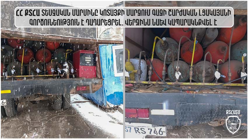 ՀՀ ՔՏՀԱ տեսչական մարմինը Կոտայքի մարզում գազի շարժական լցակայանի գործունեություն է դադարեցրել. վերջինս նաև կապարակնքվել է